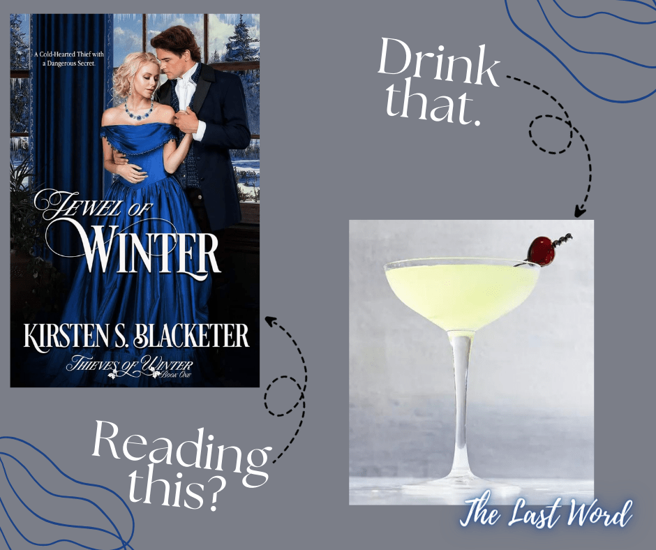 My novella series, The Thieves of Winter, dominates this list with a recommendation for each novella. Let’s kick it off with Jewel of Winter. The Last Word gives us the perfect balance between a simple gin cocktail and something over the top. The Green Chartreuse liquor makes this one a delight. Much like the tension boiling between Jessamine and Edmund in Jewel of Winter, it’s guaranteed to warm you up. Click HERE for the link.