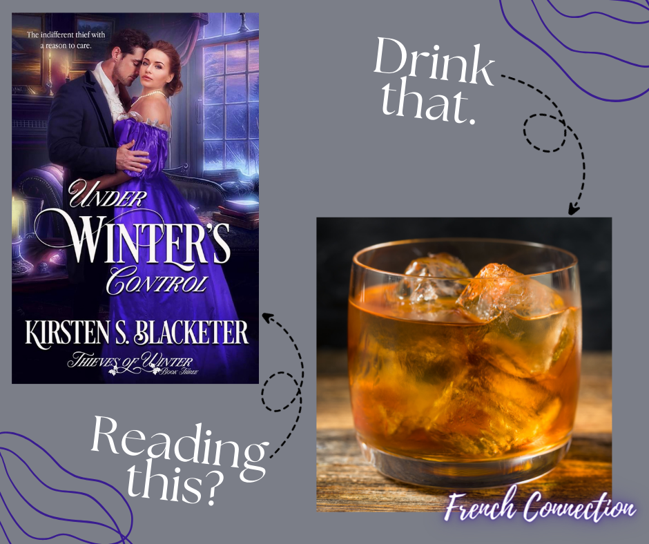 Under Winter’s Control is book three in the Thieves of Winter Series. It expands on the plot shenanigans begun in the first two books but focuses completely on Kate and Monty’s relationship. These two are smitten with each other but fight it because of the perceived chasm between them thanks to their differing social class. I’ve chosen the French Connection as their signature cocktail as it’s a delightfully sweet dessert beverage that leaves you warm and satisfied after a hearty meal. Click HERE for the recipe.