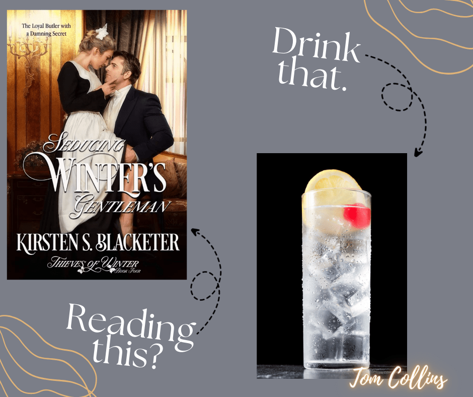 You’ve heard of upstairs/downstairs (where the lord/lady falls in love with a servant), well, Seducing Winter’s Gentleman takes it a step further when the maid falls in love with the older, more distinguished butler. Anna and Bates live a simple life serving in a prominent lord’s house, but they can’t deny their attraction. It’s deliciously complicated in their mind but quite the opposite in reality. This simple love story has a fun twist that leaves readers breathless and refreshed. It’s best enjoyed with a cocktail that does the same. A Tom Collins is a simple, bubbly drink that compliments the romance simmering in this novella. Here’s the Recipe.