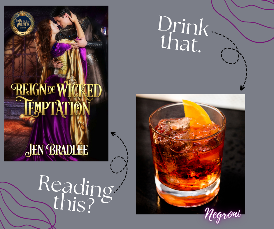 Reign of Wicked Temptation is the final installment of the Prince of Whispers Trilogy. It’s both a heartwrenching and emotional journey for the reader as well as the characters. I made Crispin and Ruby work for their happily ever after, that’s for sure. The best way to describe it is bittersweet. The perfect cocktail compliment to this book is the classic Negroni, which is a strong, spirit-forward cocktail. It has a bite of bitterness to keep you from drinking it too fast. But for those who enjoy that kind of thing, I highly recommend drowning your tears in it as you read. Click HERE for the recipe.