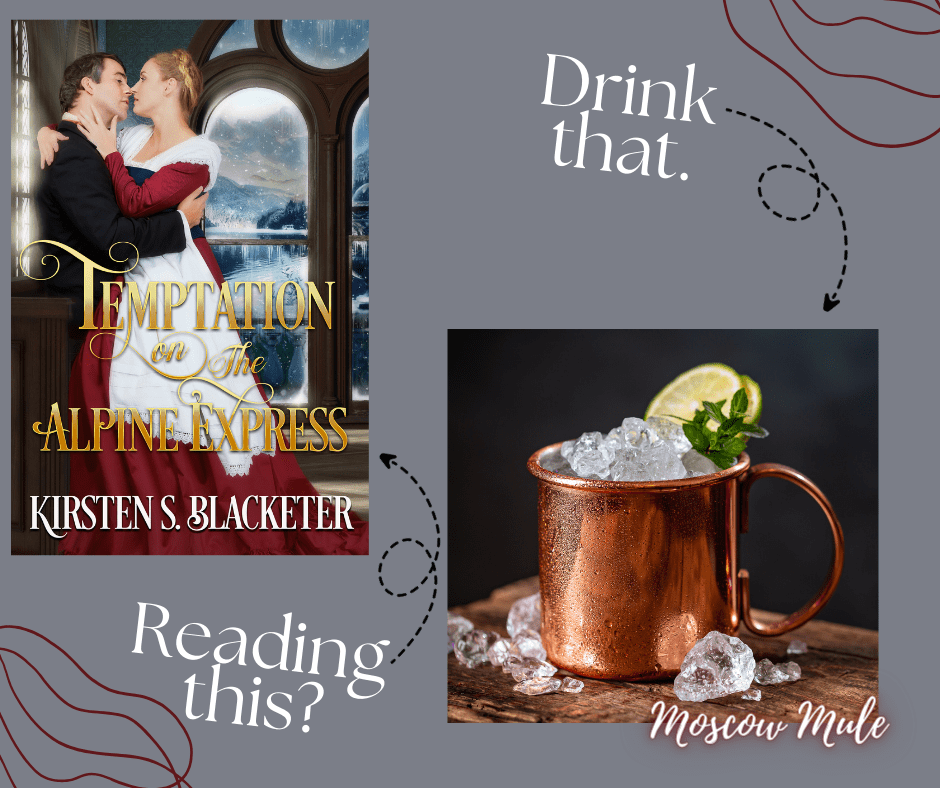 Temptation on the Alpine Express is yet another example of a book I didn’t realize I would ever write. After writing Seduction on the Alpine Express, I realized Nikolai and Gertrude were hiding their own secrets. I was determined to uncover them. A Russian bodyguard and a Bavarian lady’s maid. I really wanted to go with a straight shot of ice-cold vodka here, but their romance is much more complex and nuanced. The bite of ginger beer and lime adds depth to a Moscow Mule, making this drink exactly what you need to soothe your nerves as you uncover all of the secrets in this steamy historical romance. Check out the recipe HERE.