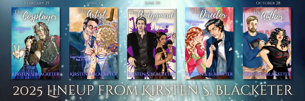 Fangirl Confessions in Order: The Cosplayer, The Artist, The Bodyguard, The Director, and The Author. The Cosplayer releases on February 25th. The Artist releases on April 22nd. The Bodyguard releases on June 26th. The Director releases on August 26th. The Author releases on October 28th.