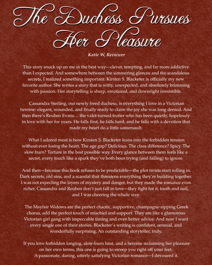 If you’re signed up for my newsletter which will send out on Monday (or purchased a paperback of Duchess), then you’ll get the first peek at the next installment of the Wanton Widows, The Viscountess in Bloom. I’ll be posting it here once I get the pre-order links for the book. It releases on June 12, 2026.