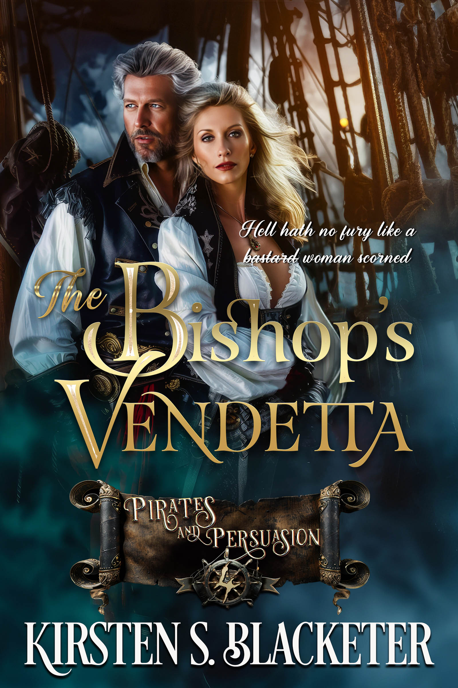When a woman in disguise propositions him outside the tavern, he’s loathe to trust anyone…especially her. The Princess of Navarro, wanted for murder and kidnapping, is desperate and in dire need of a savior. The opportunity holds both the promise of riches and the peril of a merciless death. Only a madman would take the bargain she offers. But James Hook knows treasure when he sees it.